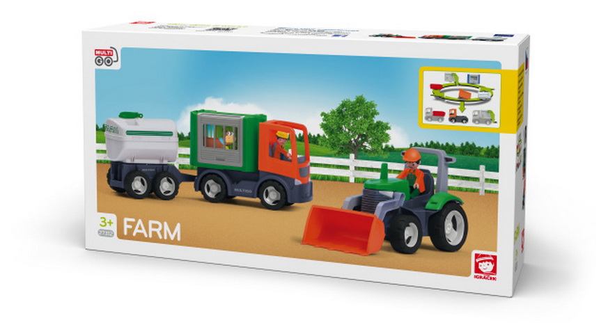 MultiGO jsou auta a traktory s praktickým bajonet systémem, který umožňuje snadnou výměnu korbiček a dalšího příslušenství. Balení obsahuje traktor, radlici, náklaďák, maják, přívěs, 2 vyměnitelné korbičky a 3 Igráčky. Vyrobeno v České republice.