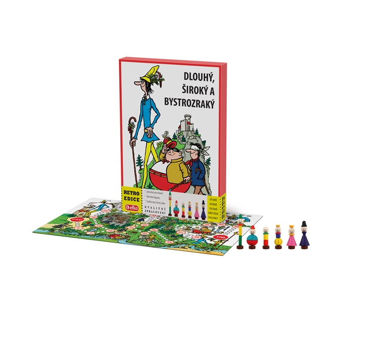 Součástí jsou dřevěné postavičky Dlouhý, Široký, Bystrozraký, Princ,Princezna, Černokněžník, dřevěné kostky.
